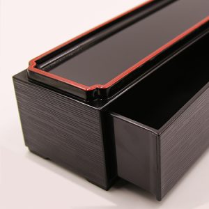 Kiểu cách: hình chữ nhật có ngăn kéo, họa tiết viền đỏ kiểu Hoa, kiểu Nhật, hộp được đúc 100%
