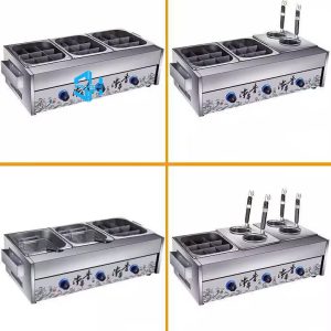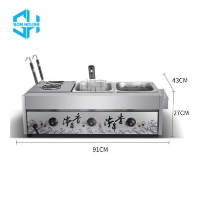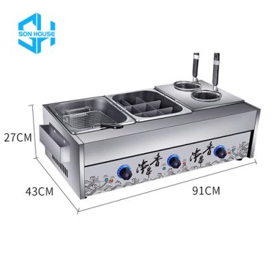 Bếp điện oden 18 ngăn bán xiên que nhúng lẩu kiểu Nhật kết hợp nồi chiên dầu (3 bếp độc lập)
