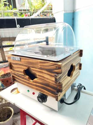 Bếp điện oden chia ngăn bán lẩu xiên que có nắp đậy mái vòm trong suốt