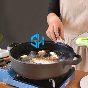 NỒI GANG ĐEN ĐÚC ĐÁY CẠN NẤU LẨU KIỂU NHẬT